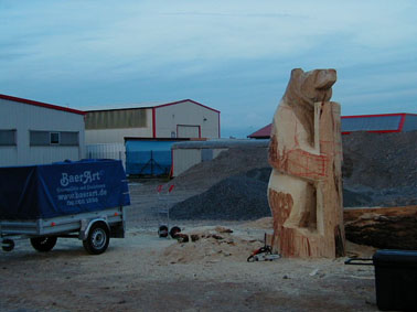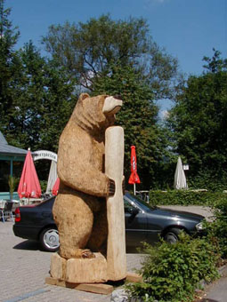 BÄR hält ein Schild in den Pranken Höhe ca 4 m Material Pappel (gibts natürlich auch in kleiner)