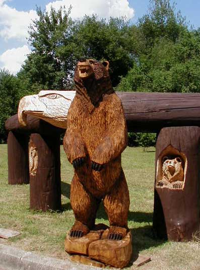 Grizzly Holz Schnitzerei Motorsaegenskulpturen Bear Wood Carver Chainsaw Artist Carving BaerArt
