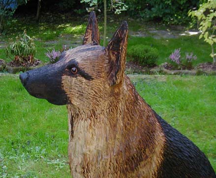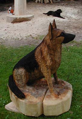 Hund Dog Schaeferhund Malamut Holzfiguren Holz Figur Motorsäge Kettensäge Holzschniterei Holger Baer Chainsaw Artist BaerArt Skulpturen und Totems