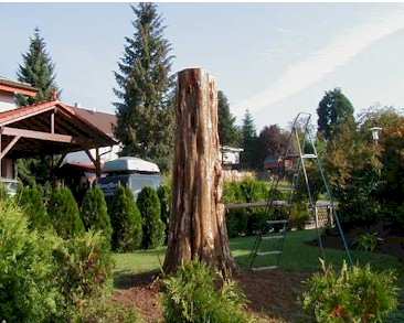 Ein noch stehender Baumstumpf im Garten eignet sich optimal einem