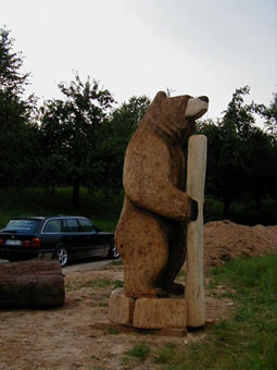 BÄR hält ein Schild in den Pranken Höhe ca 4 m Material Pappel (gibts natürlich auch in kleiner)