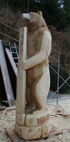 Holzbär, Holzbaer, Holz, Baer am Zaun, Holzfiguren, Holzschnitzerei, Kettensägenkünstler,