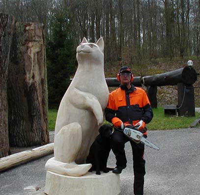 Cat Katze Holzfigur Holzkatze Kettensäge Motorsäge BaerArt