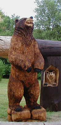 Grizzly Holz Schnitzerei Motorsaegenskulpturen Bear Wood Carver Chainsaw Artist Carving BaerArt