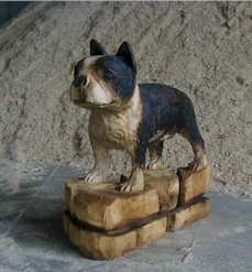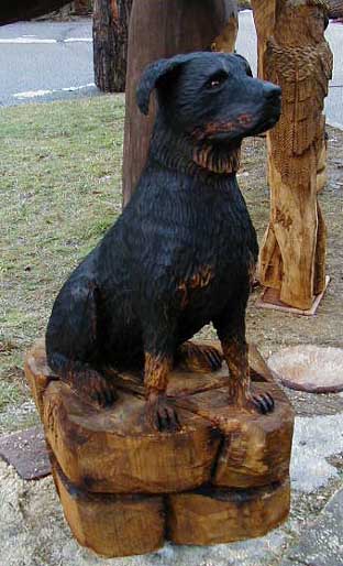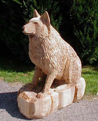 Hund Dog Schaeferhund Malamut Holzfiguren Holz Figur Motorsäge Kettensäge Holzschniterei Holger Baer Chainsaw Artist BaerArt Skulpturen und Totems