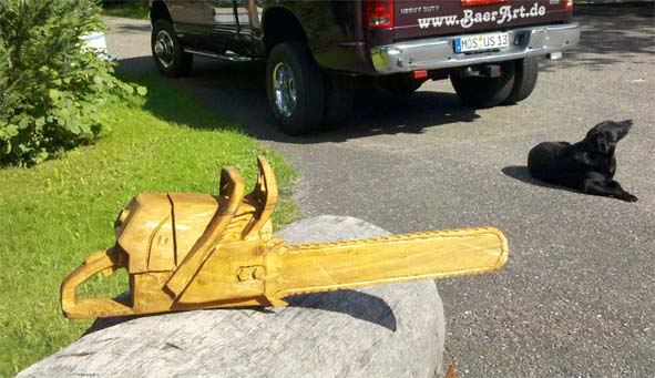 100% mit der Kettensaege geschnitzt!! Nix geschliffen oder anderweitig bearbeitet!!
