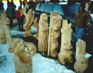 February 12, 2000 - 31 carvers descended on the town of Ridgway, PA. This event was successful thanks to the efforts of the residents of Ridgway, who went well beyond anything expected from the carvers from near and far - England, Germany, Canada, from South Florida and the northeast coast of the U.S., Enough can't be said about the hospitality of the people of Ridgway. They all deserve a round of applause. Now, here's some photos